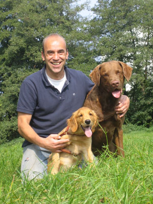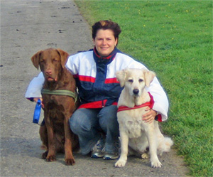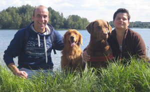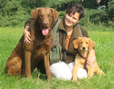 Ich wünsche mir seit ich denken kann einen Hund. Doch erst mit dem Kauf unseres Hauses 1998 ließ sich dieser Traum hundegerecht in die Tat umsetzten – wir suchten Benno aus ! Ich bin im Hause Flauaus für die Ausbildung der Hunde zuständig. Vom ersten Tag an ging ich mit Benno in die Hundeschule und zusammen schafften wir nach den ersten harten Monaten nach 1 ½ Jahren die Begleithundeprüfung !! Mit Kelly sammelte ich erste Agility-Erfahrungen. Mit George konnte ich in die Dummy- und jagdliche Arbeit einsteigen sowie weiter Agility betreiben. George & ich sind zu einem wunderbaren Team zusammen gewachsen ... Mit Nash möchte ich den mit George begonnenen Weg fortsetzen und Schwerpunktmäßig Dummy-Sport betreiben. |